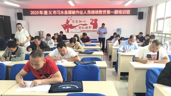 為認(rèn)真貫徹落實(shí)《爆破作業(yè)人員資格條件和管理要求》和《關(guān)于貫徹執(zhí)行<爆破作業(yè)人員資格條件和管理要求>有關(guān)事項(xiàng)的通知》的文件精神,為滿足遵義地區(qū)爆破作業(yè)單位對(duì)作業(yè)人員進(jìn)行培訓(xùn)的需求,我校在遵義市習(xí)水縣開(kāi)展了第一期培訓(xùn)。