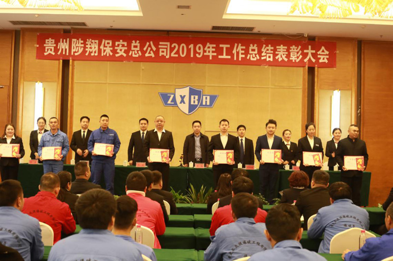2020年1月20日下午,貴州陟翔保安總公司2019年度工作總結(jié)表彰大會在貴定縣御庭酒店會議室召開。總公司股東李鵠、羅仕銀、總經(jīng)理馮波、副總經(jīng)理陳春生、余艷、財務總監(jiān)楊長碧出席會議,各分公司、項目部、培訓學校負責人、總公司全體人員、分公司員工代表、受到表彰的先進單位代表和先進個人參加會議。總公司常務副總經(jīng)理張小慶主持會議。